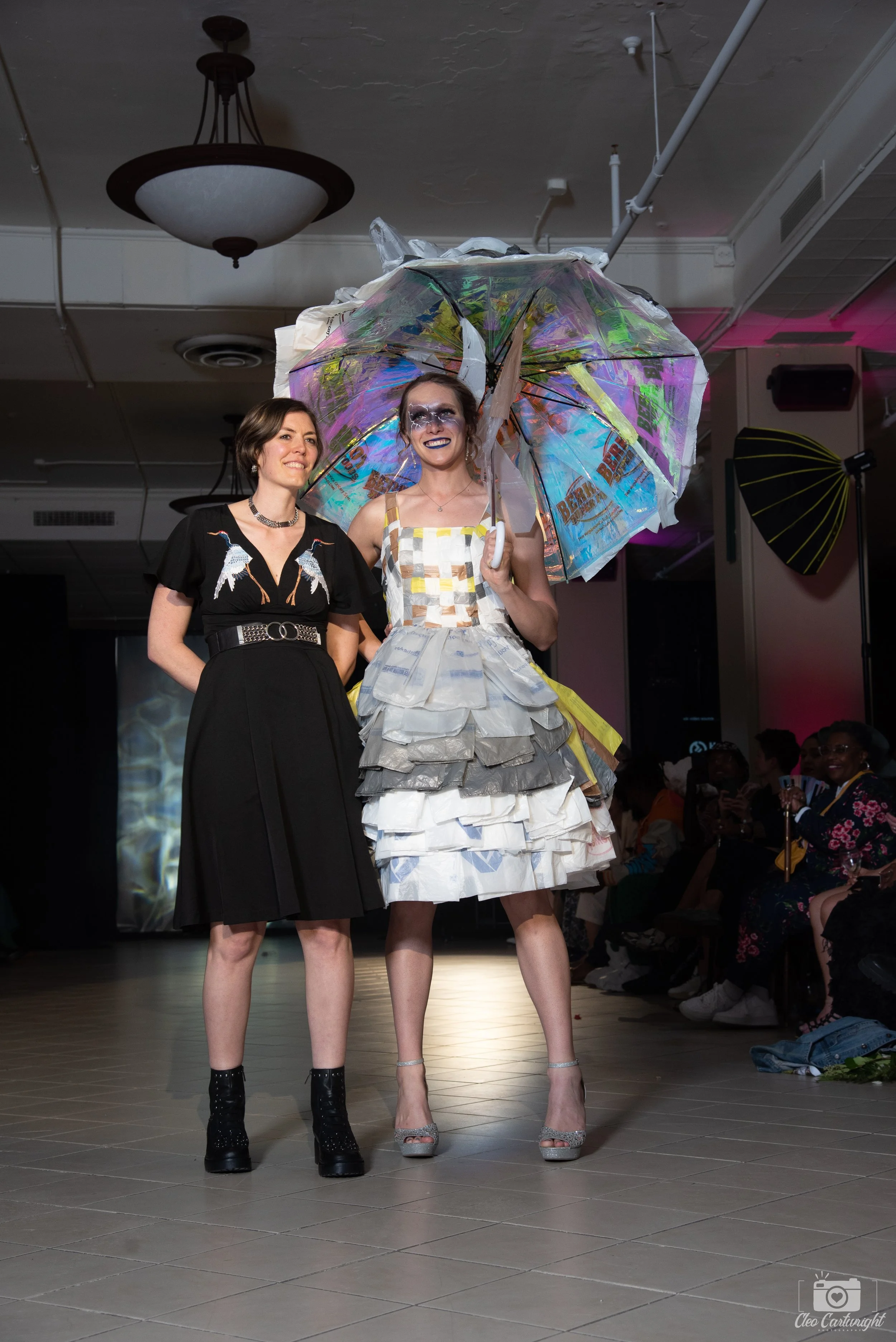 On the Trashion Revolution runway with my design ‘Plastic Flow’ comprised of 309 single use plastic bags, which is the amount Chicago uses everyone minute! Modeled by Lexi Prochaska, HMU by Cassandra Fowler, Photo by Cleo Cartwright.